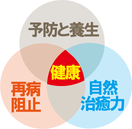 これは、なんらかの原因でからだのバランスや調和が崩れた時、それを元に戻そうとするチカラで、このチカラを最大限に生かし、日々のお悩みを解決することが重要と考えています。